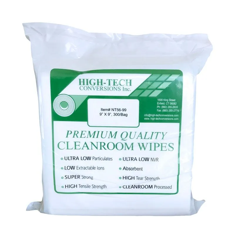 NOVA-TECH® 56 Wipes are an especially effective general purpose, economical cleanroom wipe. The material is tough, abrasion resistant, absorbent, and virtually free of particle generation. It is comprised of a synergistic blend of virgin polyester and cellulose that is hydro-entangled into a uniform, super-tough fabric. These unique features give NOVA-TECH® 56 Wipes a high degree of absorbency and effectiveness during the process of general wiping. Wipes made with this fabric are converted in a class 100 cleanroom.